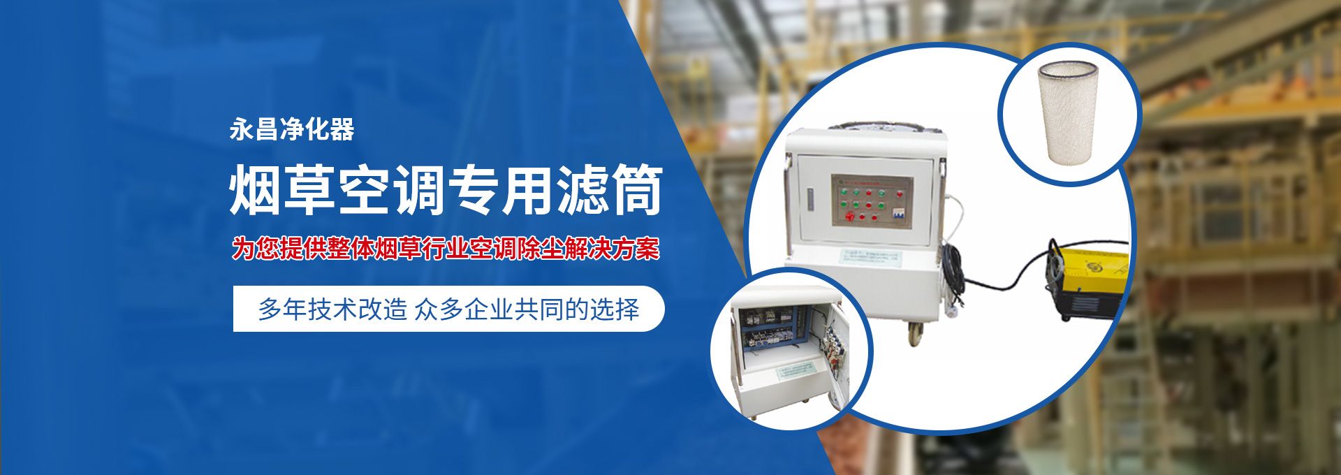 新鄉(xiāng)市永昌凈化器有限公司是生產(chǎn)煙草行業(yè)空調(diào)除塵專(zhuān)用濾筒的企業(yè)。注冊(cè)資金1000萬(wàn)元。已通過(guò)ISO9001國(guó)際質(zhì)量管理體系認(rèn)證。對(duì)產(chǎn)品有嚴(yán)格的管理制度和售后服務(wù)。我公司以誠(chéng)信、負(fù)責(zé)、守信譽(yù)、重質(zhì)量的精神所生產(chǎn)的產(chǎn)品,近幾年來(lái)在煙草行業(yè)受到廣泛應(yīng)用,并受到用戶(hù)的一致好評(píng)?! 囊痪啪潘哪暌詠?lái)為煙廠(chǎng)的空調(diào)設(shè)備服務(wù)。十幾年來(lái),我們不斷走出去請(qǐng)進(jìn)來(lái)學(xué)習(xí)新技術(shù)。定期到用戶(hù)那里咨詢(xún)情況:互相交流,認(rèn)真聽(tīng)取寶貴意見(jiàn),不斷提高產(chǎn)品質(zhì)量。從經(jīng)濟(jì)和安全,方便的角度出發(fā),根據(jù)煙廠(chǎng)濕度大的生產(chǎn)環(huán)境和濾筒收集到的含酸堿、氧化劑的粉塵。在空調(diào)箱工作狀態(tài)下我們頂著巨大的風(fēng)壓危險(xiǎn)在箱內(nèi)停留了幾分鐘,認(rèn)真查看濾筒工作情況,發(fā)現(xiàn)濾筒有并死狀態(tài),造成濾筒不過(guò)濾、不過(guò)風(fēng)、壓差高的現(xiàn)象。經(jīng)幾十次試驗(yàn)分析,在標(biāo)本兼治的原則下,有針對(duì)性的解決了這一問(wèn)題。  我公司針對(duì)煙廠(chǎng)制絲、卷接包、混絲間、儲(chǔ)絲房、冷卻床、梗膨化等不同的生產(chǎn)環(huán)境,